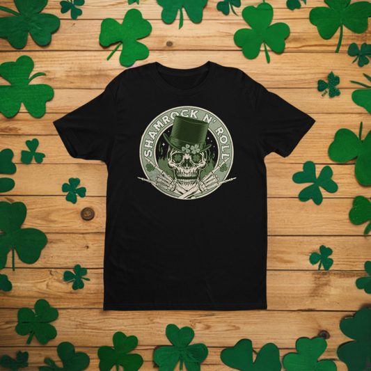 Shamrock and Roll - Rock and Roll Saint Patrick's Day Skull Unisex Heavy Cotton Tee